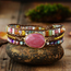 Leren wikkelarmband met kralen en natuursteen is handgemaakt en heeft een leuke Bohemian stijl in de kleuren roze en turquoise – Cara Camilla
