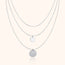 Onze Aurora Gelaagde Halsketting combineert drie prachtige kettingen tot één uniek sieraad. Het ontwerp bevat twee platte cirkels met een gladde structuur en subtiele decoratieve details. Gemaakt van hoogwaardig zilver en verkrijgbaar in zilver of 18K verguld, is deze ketting een perfecte mix van modern design en tijdloze stijl.