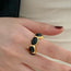 Onze Celina - Vergulde Onyx Oorclip straalt een mysterieuze stijl uit, perfect voor elke gelegenheid. Deze veelzijdige ring is gemaakt van diepzwarte onyx, een natuurlijke edelsteen die een koninklijke uitstraling biedt. Omgeven door een gouden frame, voegt het sieraad een vleugje luxe toe aan je look. Je kunt de ring ook gebruiken als stijlvolle oorclip!