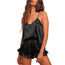Met zijn glanzende afwerking en mooie details, zoals ruffles aan het broekje en een lage v-hals, voegt deze set een vleugje verfijning toe aan je avonden. De set bestaat uit een top en een bijpassende korte broek met een elastische tailleband die garant staat voor moeiteloos draagcomfort.Â