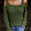 Oversized fit, stijlvol design- De functie van een ontspannen en losse oversized trui. Halternek, opvallend cold shoulder design, klassieke lange mouwen, hol gebreide trui, gekruiste hals, effen kleur, kabel gebreide top.