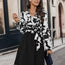 Het ontwerp met lange mouwen en een chique V-hals maakt deze jurk geschikt voor zowel formele als informele gelegenheden. De knielengte en het veelzijdige patroon maken het een ideaal kledingstuk dat je kunt aanpassen aan je persoonlijke stijl. Combineer het met accessoires naar keuze voor een eigentijdse uitstraling.