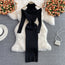 Verhoog je herfstgarderobe met deze verfijnde lange mouw gebreide jurk. Ontworpen voor de moderne vrouw, accentueert het je rondingen met een slanke pasvorm, terwijl de holle schouder een vleugje verleiding toevoegt. Perfect voor sociale evenementen en stijlvolle uitjes.