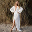 Ontdek de perfecte mix van comfort en stijl met deze vakantieklare linnen jurk. De diepe V-hals en hoge taille creëren een flatterend silhouet, terwijl lange lantaarnmouwen en een zijsplit een vleugje elegantie toevoegen. Ideaal voor elke casual uitje, zorgt deze jurk ervoor dat je de hele dag chic en comfortabel blijft.