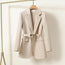 • Ontwerp: Blazer met riem, reverskraag en klepzakken