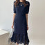 Deze veelzijdige jurk met korte mouwen combineert comfort en stijl, waardoor het perfect is voor elke gelegenheid. Het opengewerkte gebreide ontwerp en het ijszijde materiaal zorgen ervoor dat je koel blijft, terwijl de tailleband je figuur accentueert.