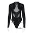 Nayeli is een strakke lange mouw bodysuit, die verrast met transparante inzetten en bijzondere cut-outs. De moderne hoge kraag geeft het ontwerp structuur, terwijl de mesh-elementen strategisch zijn geplaatst om de figuur te accentueren. Het elastische materiaal zorgt voor hoog draagcomfort en een perfecte pasvorm. Of je het nu draagt met een leren broek, jeans of een hoge taille rok – deze bodysuit is een hoogtepunt voor feestavonden of speciale evenementen. Voor iedereen die modieus op wil vallen, zonder in te boeten op comfort.