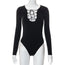 Aveline is een figure-hugging bodysuit met een diepe V-hals en opvallende vetersluiting aan de voorkant. De zachte, elastische stof zorgt voor hoog draagcomfort en past zich perfect aan de lichaamsvorm aan. De vetersluiting geeft het ontwerp een opwindende uitstraling en is individueel aanpasbaar. Ideaal onder een blazer, met jeans of als statement-piece voor de avond – deze body past zich aan jouw stijl aan. Veelzijdig te dragen en altijd een blikvanger.
