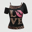 Het Zaria dames shirt verrijkt met een creatieve luipaardprint en een artistiek statement-motief. De schoudervrije snit zorgt voor een vrouwelijke en tegelijkertijd casual uitstraling. Dankzij het elastische, ademende materiaal zit de top prettig en behoudt hij zijn vorm. Ideaal voor elke dag of als eyecatcher bij evenementen – Zaria combineert draagcomfort met een stedelijke flair.