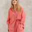 De zomercombinatie "Tabea" verenigt modieuze structuur met luchtig draagcomfort. Het tweedelige set bestaat uit een licht bovenstuk met een gestructureerde oppervlakte en een bijpassende short met een comfortabele pasvorm. De fijne textuur zorgt voor een trendy uitstraling die zowel overdag als 's avonds werkt. De ademende stofkwaliteit maakt dit set tot de ideale metgezel op hete dagen. Of casual gestyled of iets chicer – Tabea past zich aan jouw zomer aan.