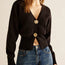 De Alina Zwarte Trui met 2 Knopen biedt een tijdloze mix van stijl en comfort. Voeg deze veelzijdige trui toe aan je garderobe en geniet van een warme, modieuze look die geschikt is voor elke gelegenheid.
